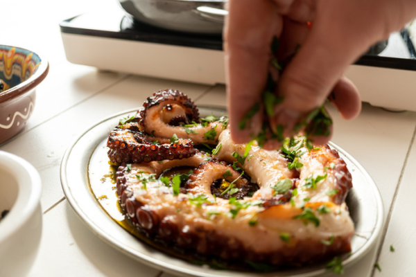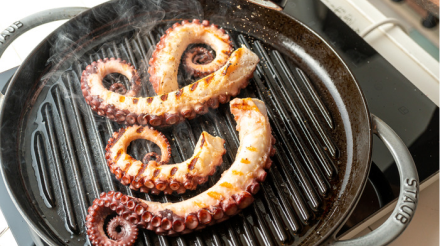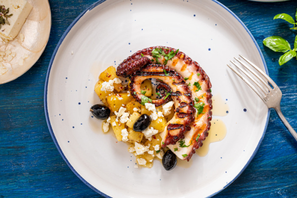 Chef Bogdan Alexandrescu ne propune o reteta care ne duce cu gandul pe tarmurile mediteranei: ananas spicy cu caracatita si feta. O combinatie inedita de dulce, acrisor, spicy si sarat care te va incanta.