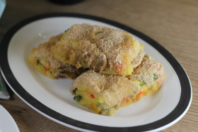 Taie cartofii in cubulete si scoate conopida din punga.