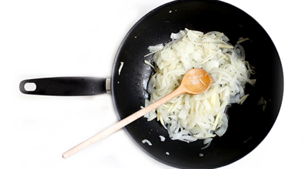 Intre timp, taie in felii doua dintre cepe, iar ghimbirul – in bastonase subtiri.