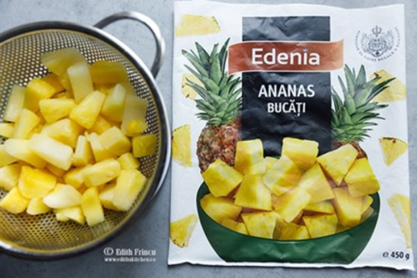 In pragul sarbatorilor de iarna, Edith kitchen ne propune o reteta savuroasa de biscuiti pina colada, cu ananas si cocos, dar fara alcool. Buni tare, fragezi si aromati, sunt si mai buni dupa 1-2 zile. Biscuitii pina colada se pastreaza in cutii inchise pana la 10 zile. Ii puteti orna, sau ii lasati simpli, sunt la fel de buni. Ananasul este un fruct nobil si aromat, cu un gust usor acrisor si dulceag, bogat in vitamina A si C, astfel ca ofera multiple efecte benefice asupra sanatatii. Bucatile de ananas Edenia sunt taiate in cubulete de dimensiuni perfecte, gata pentru a fi folosite. Gama de fructe Edenia contine 5 sortimente versatile, care se poate consuma ca atare, in retetele de prajituri, pentru bauturi, sau in diverse preparate culinare: Mango bucati, Ananas bucati, Zmeura, Visine si Fructe de padure.