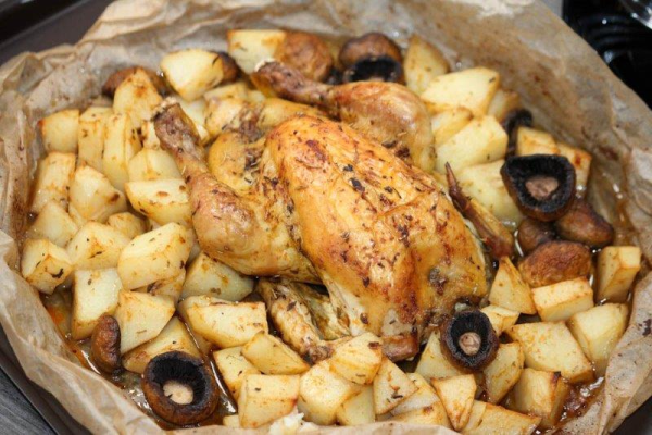 Coquelet in papiota cu cartofi si ciuperci by Flaveur