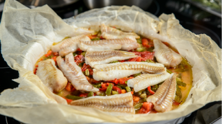 Crema de ardei copt invaluie delicat fileurile de cod Atlantic Edenia, gatite la cuptor, in aceasta reteta simpla si gustoasa, de inspiratie mediteraneana. Preparata rapid, in doar 20 de minute.