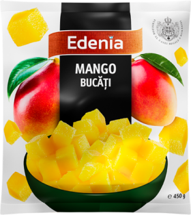 Mango bucati de la Edenia este preparat din 100% fruct proaspat de mango, curatat, spalat, taiat bucati, sortat si congelat rapid. Provine din cele mai bune soiuri de mango si are multe beneficii pentru santatate cum ar fi asigurarea unui necesar de vitamine esentiale si imbunatatirea digestiei.