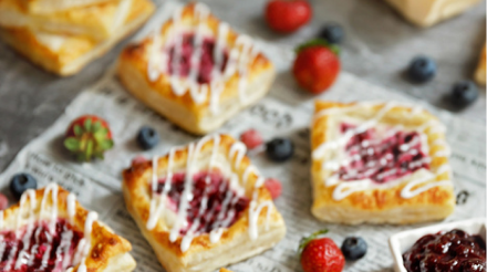 Mini tarte cu fructe de padure si branza, un desert care se prepara super rapid cu 3 ingrediente cheie: aluat foietaj, mixul perfect de fructe de padure si crema de branza indulcita si aromata cu vanilie. O combinatie dulce-acrisoara, cremoasa si crunchy.