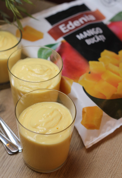 Pentru a prepara mousse de mango vom folosi Edenia mango bucati, produs congelat, disponibil tot anul.