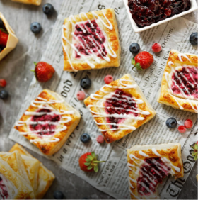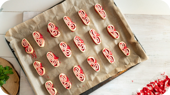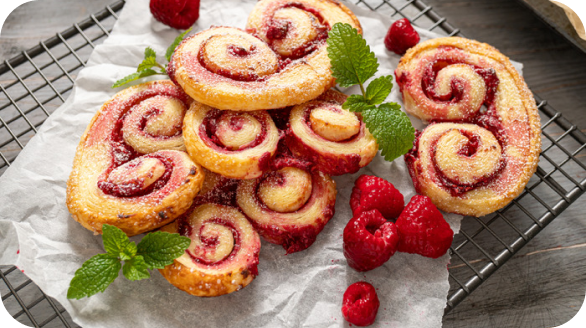 Chef Bogdan Alexandrescu (Dexter) a gasit reteta perfecta de palmieri cu zmeura. Intinzi aluatul de foietaj, faci un piure de zmeura delicios, bagi 12 minute la cuptor si gata, ai cu ce te indulci cat e ziua de lunga. In plus, pe langa faptul ca este un desert gustos, este si unul plin de antioxidanti, datorita nutritentilor continuti de zmeura.