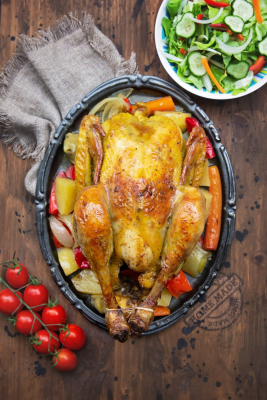 Poulet jaune cu unt, usturoi si legume la cuptor by Edith
