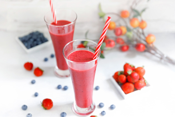 Smoothie cu capsuni, sfecla si mango este combinatia de fructe si legume numai buna ca sa te racoresti sau cand te grabesti. Contine: mango, capsuni, afine, sfecla rosie, ghimbir si coriandru.
