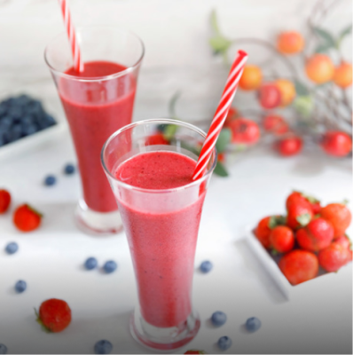 Edith kitchen a folosit suc de mere. Le puteti combina in blender si cu un iaurt clasic pentru un bol in care puteti adauga fulgi de cereale si fructe uscate. Amestecul de fructe nu este foarte dulce, asa ca daca va plac bauturile mai dulci, puteti adauga putina miere.